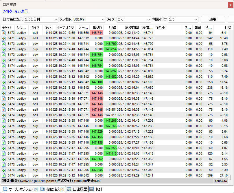 一度エントリーしたら逆行しても決済しないルールにしてますので、