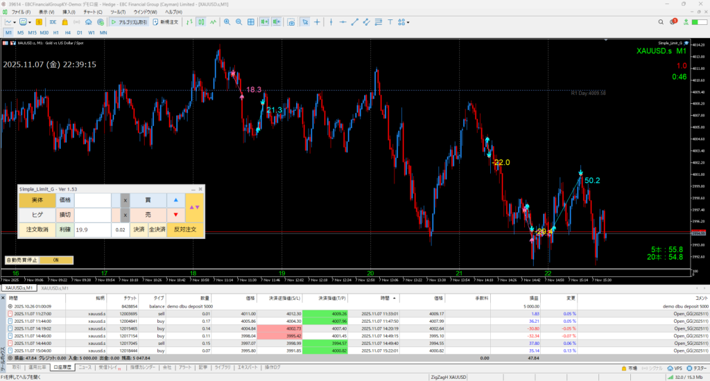 (資金管理ロジック、手動エントリーボタンは未搭載)
