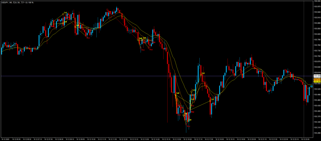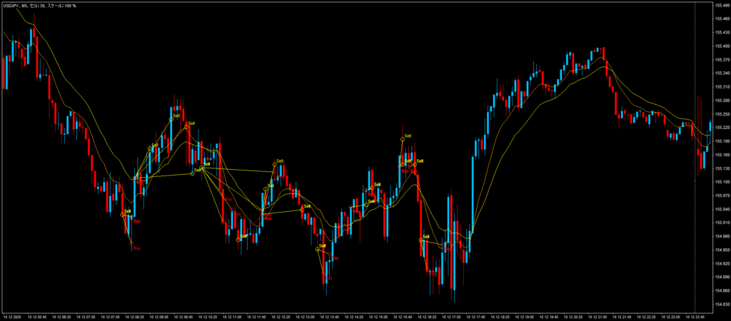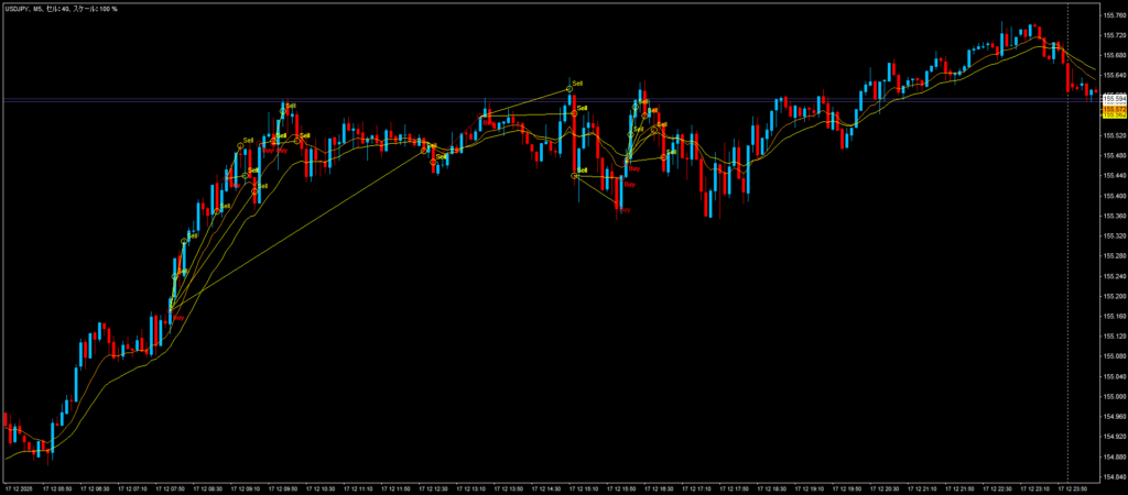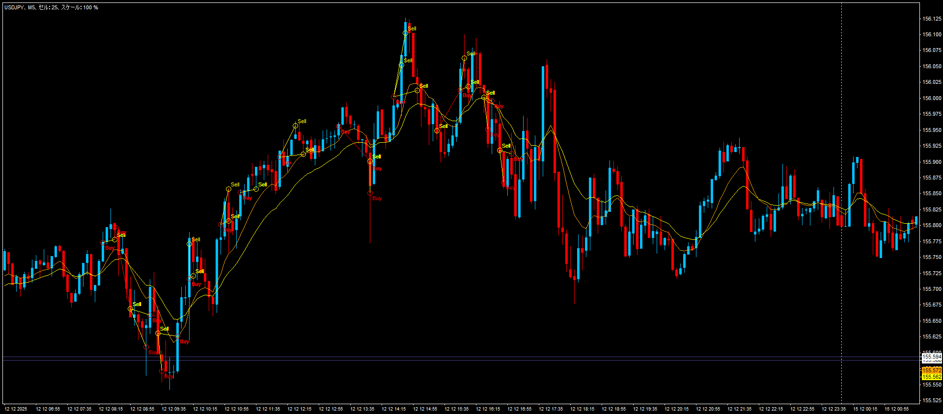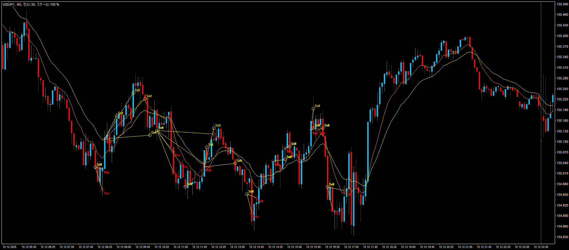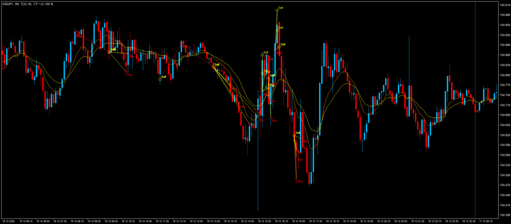 >検証用EAの設定より、サインが多く出る設定にしています。