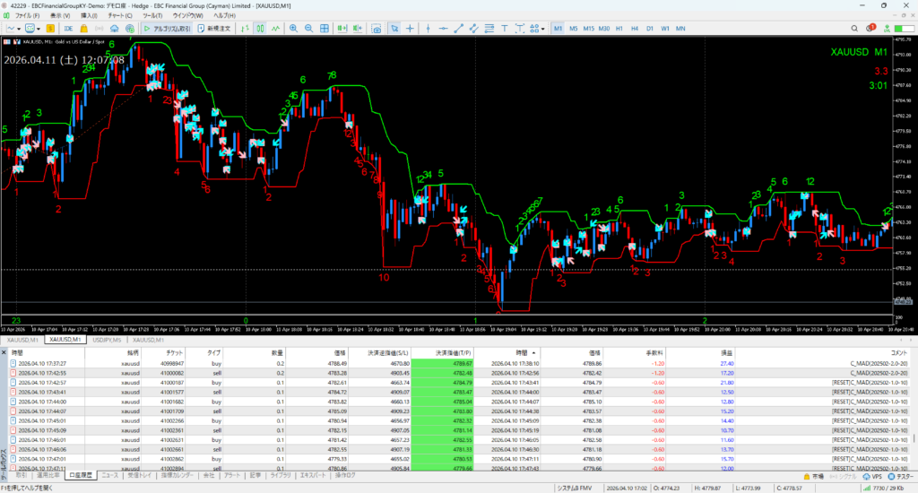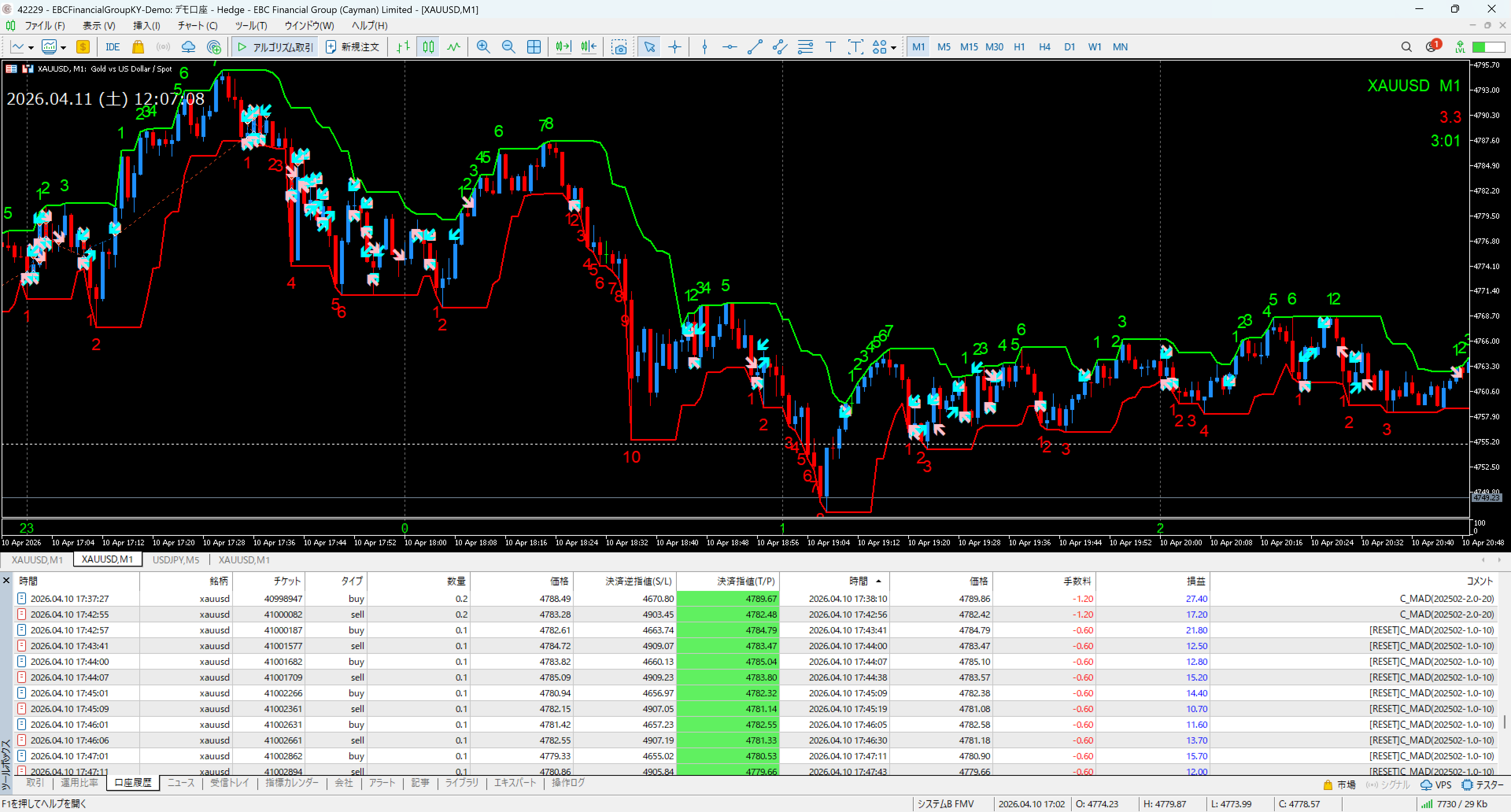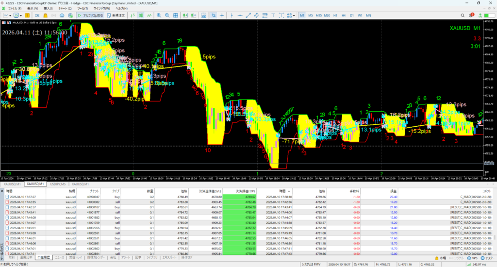昨日、4月10日の24時間の びっくりEA のトレード結果です。