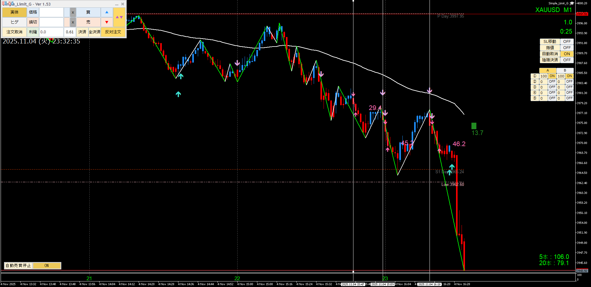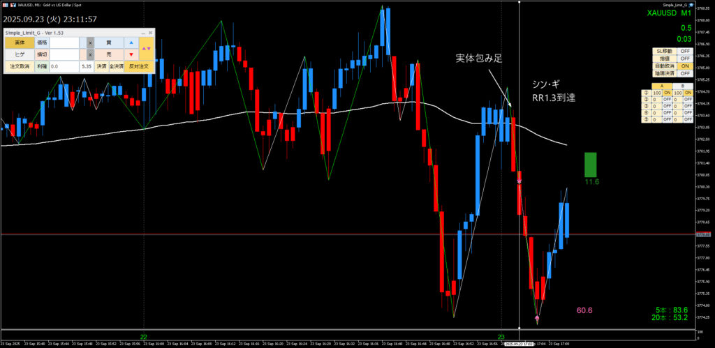 このことにより、手動トレードでのサインは