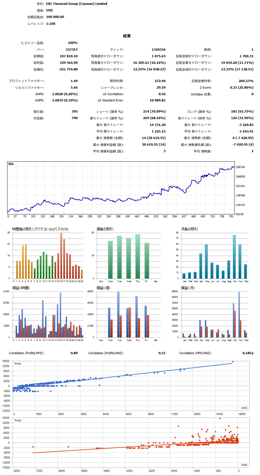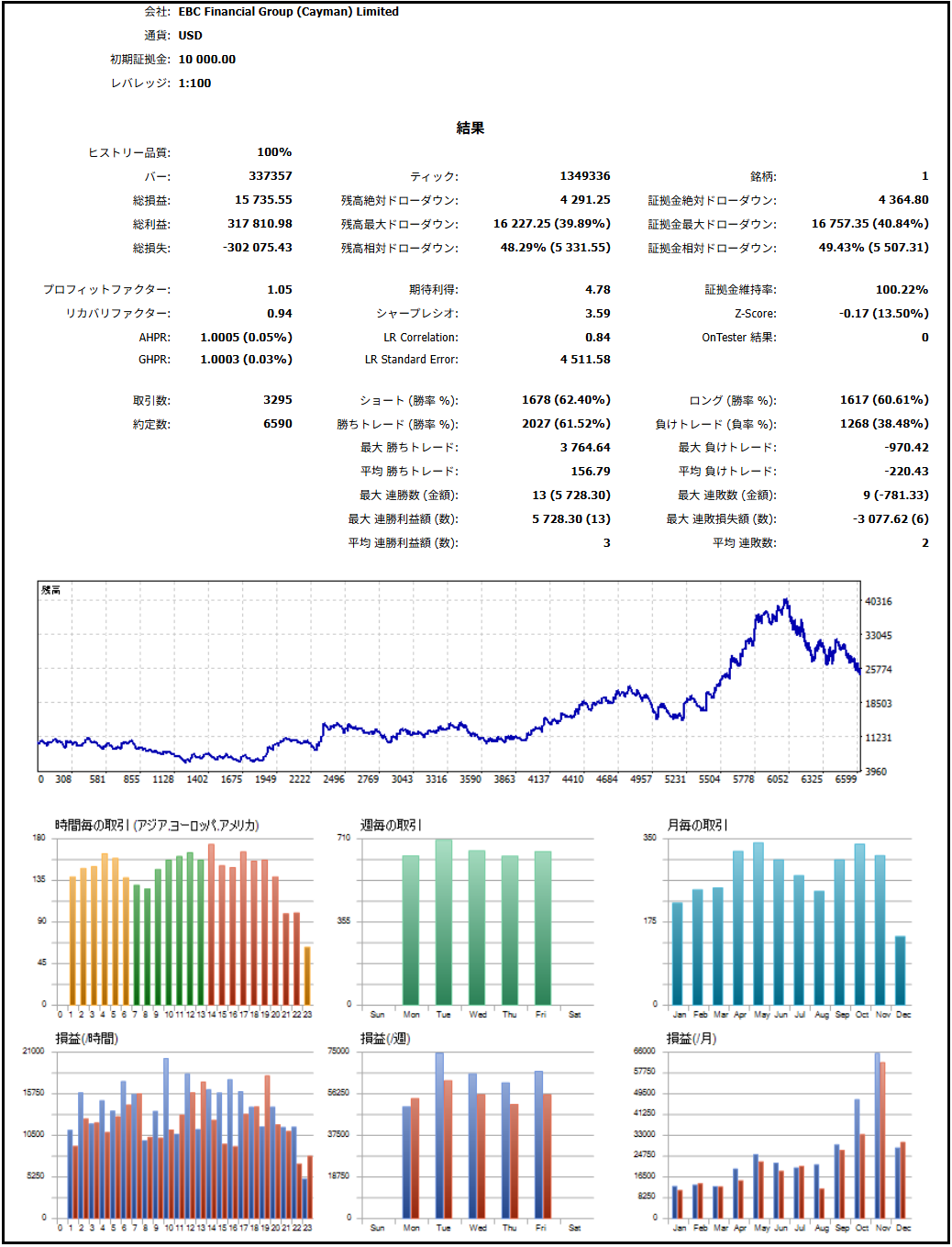 それから、Kさんは残高10万ドルだったとのことでしたので、その条件で、同じ設定・期間でテストを行ってみると、下記のようになりました。