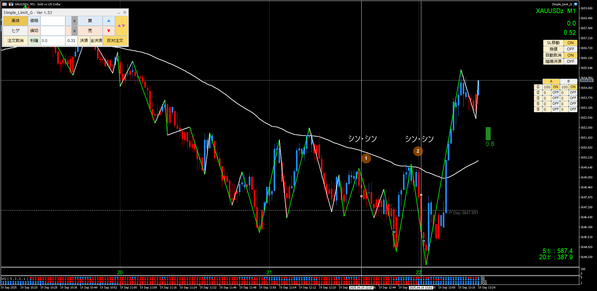 突っ込み過ぎフィルター「最新ZigZagライン(シンギ判定フィルター50%)」を採用することにより、