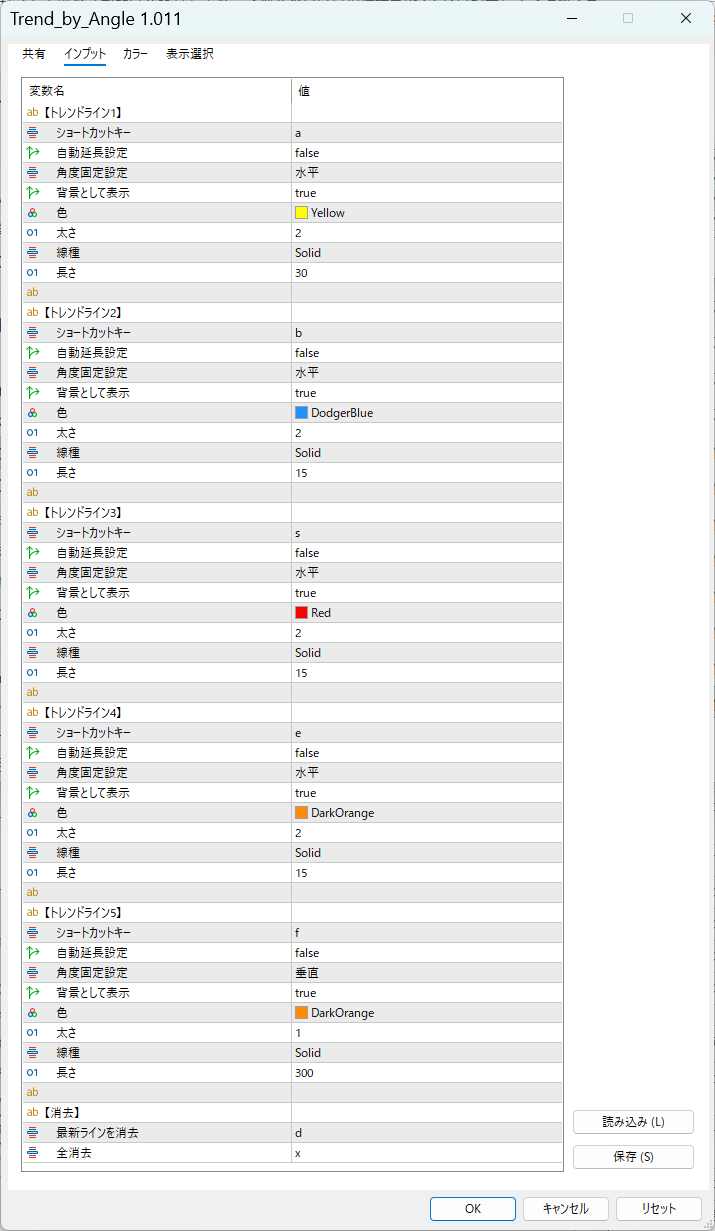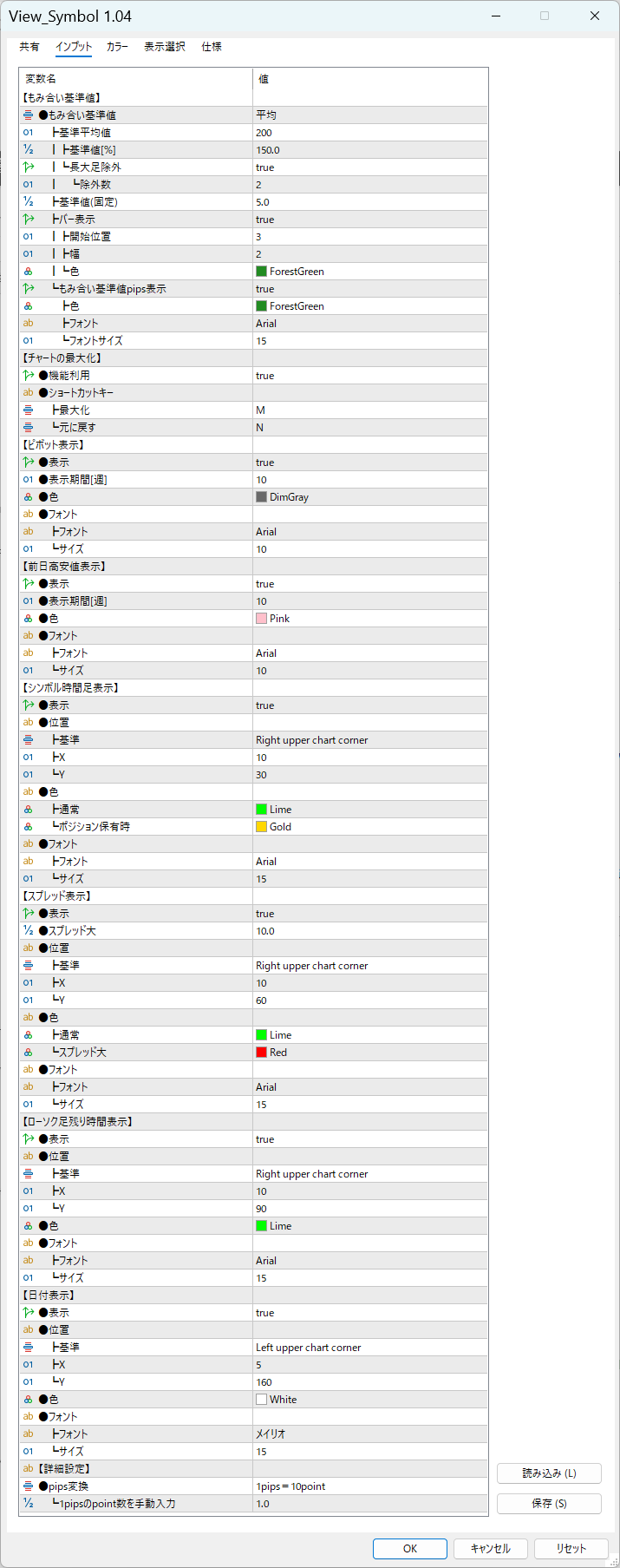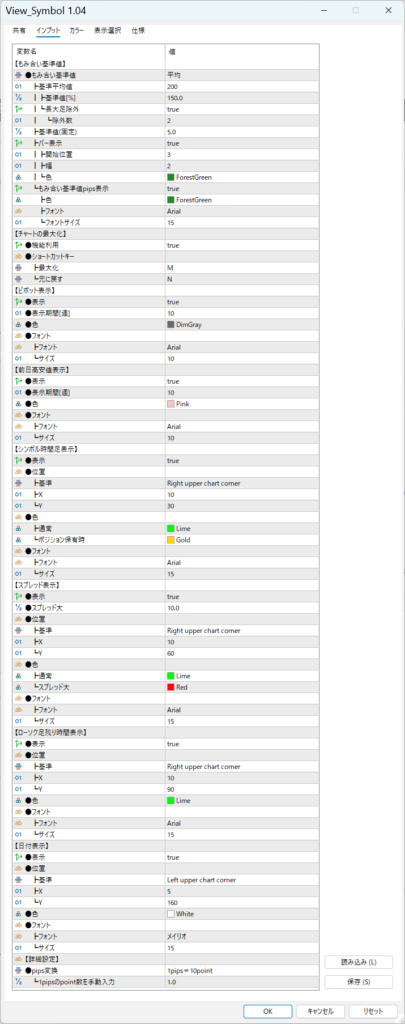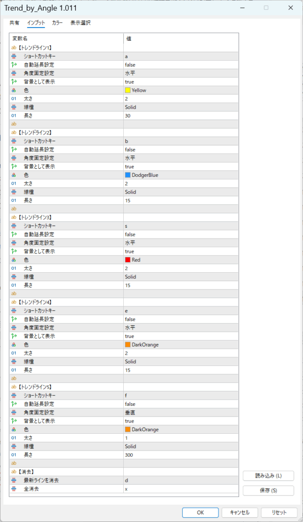 私の現在トレードで使っている設定になります。