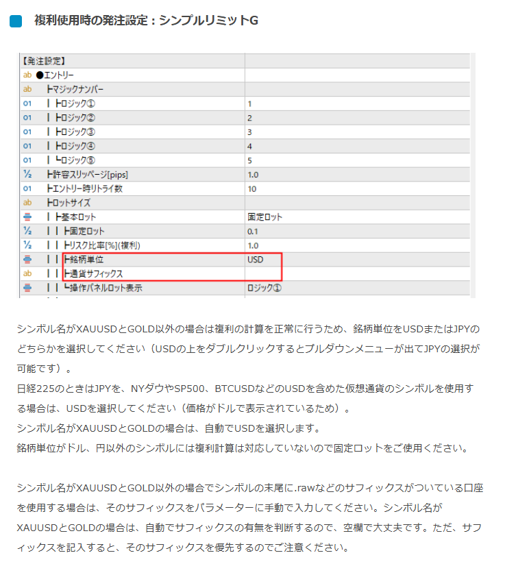 シンプルリミットGの決済機能追加のEAを
