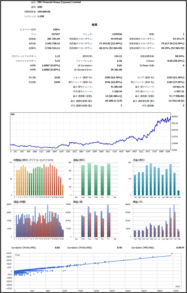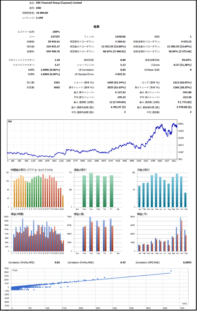 もみ合い基準値をを採用した最新バージョンの検証用EAでのバックテスト結果